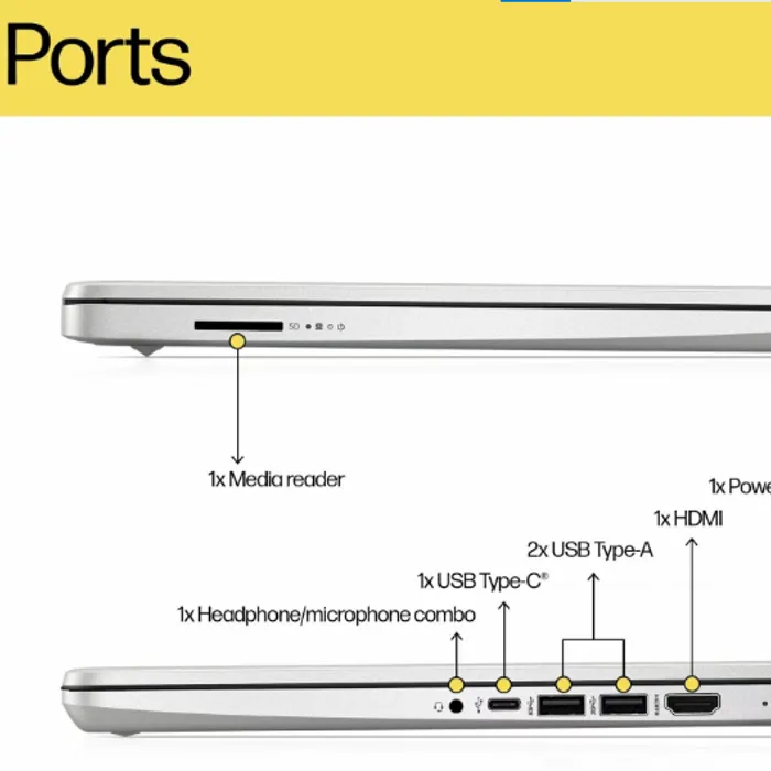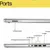 1 USB Type-C® 5Gbps signaling rate (supports data transfer only and does not support charging or external monitors); 2 USB Type-A 5Gbps signaling rate; 1 AC smart pin; 1 HDMI 1.4b; 1 headphone/microphone combo