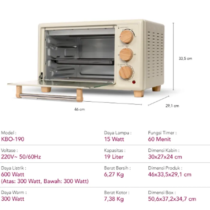 Kirin Omni Oven KBO-190 merupakan upgrade dari oven pendahulunnya KBO-190RA/RAW/LW dengan penambahan lampu interior & Fitur Keep Warm yang menjaga kehangatan makanan anda serta fitur Stay On dimana memanggang tanpa perlu khawatir batasan waktu.
