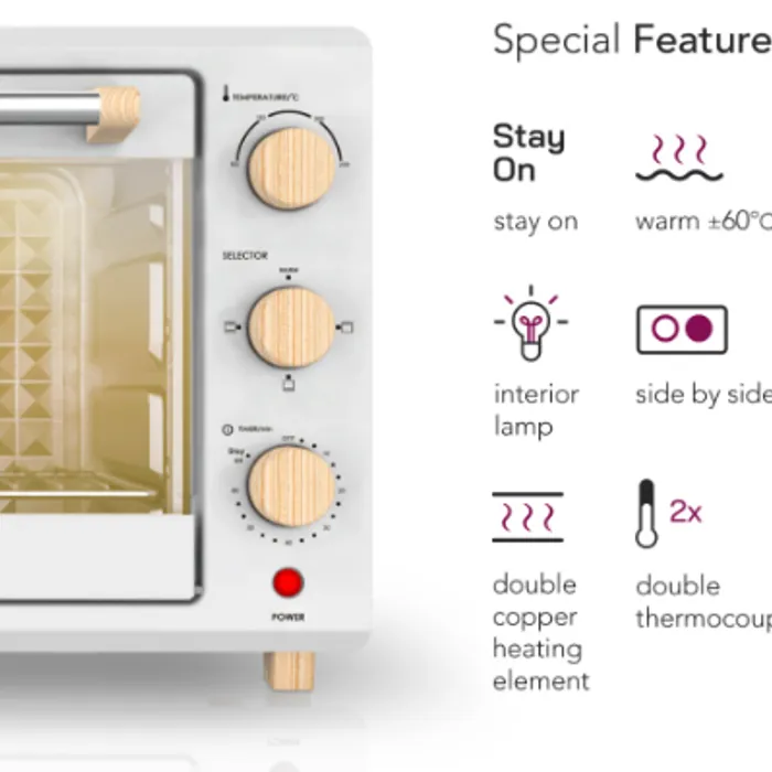 Side By Side: bisa memanggang 2 loyang kue secara berdampingan. memanggang lebih mudah tanpa memindahkan loyang dan lebih cepat matang karena tidak perlu buka tutup oven
