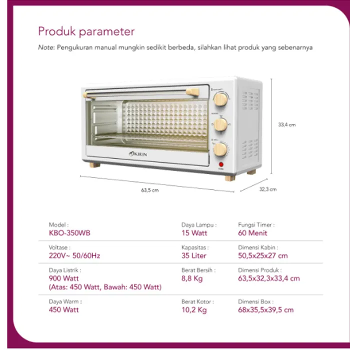 Kirin Beauty Oven KBO-350WB merupakan inovasi terbaru dari Kirin & menjadi Omni oven 35L pertama dengan wide body yang dapat memanggang 2 loyang berdampingan