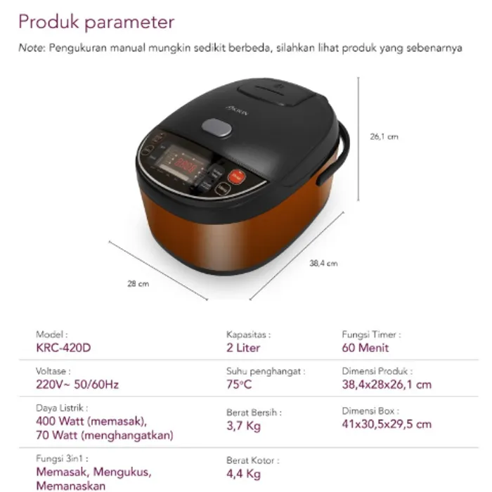 Deskripsi Kirin Digital Rice Cooker KRC-420D 2.0 Liter
