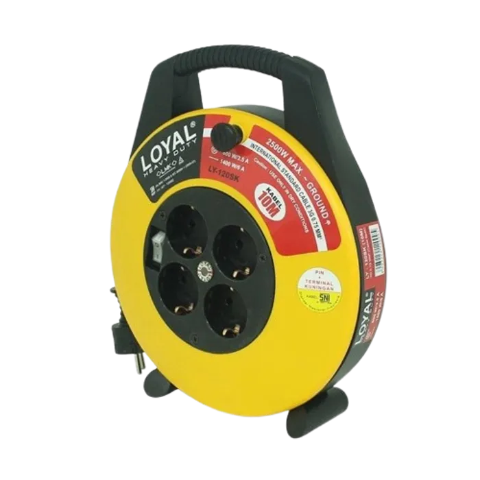 Loyal LY120SK Kabel Roll - Heavy Duty [SNI/10 m] merupakan kabel roll berbahan paduan kuningan dan plastik dengan panjang 10 m. Dilengkapi 1 tombol main switch (saklar ON/OFF), lampu indikator, pegangan dan dudukan sehingga lebih mudah digunakan dalam segala aktivitas dengan alat elektronik/alat listrik Anda. Dengan menggunakan kabel roll jenis ini kita dapat melihat langsung posisi aliran listriknya dalam kondisi On atau Off. Dengan desain yang praktis sehingga mudah untuk digunakan. Telah tersertifikasi SNI.