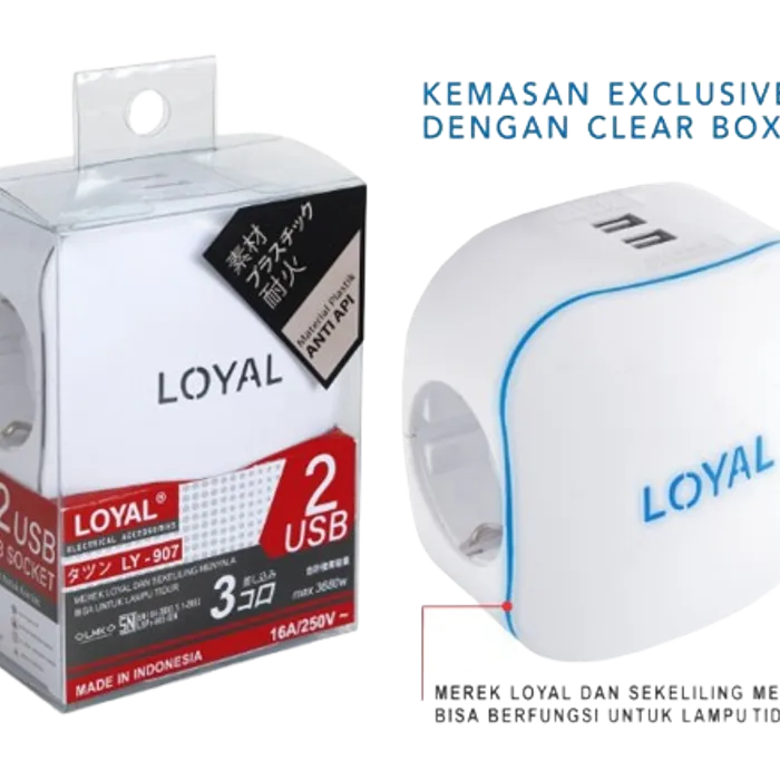 Loyal LY907 Steker Stop Kontak 3 Lubang USB 2 Lubang LED Indicator Loyal LY-907