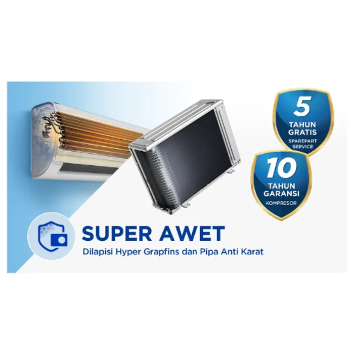 Garansi 10 tahun untuk kompresor serta 5 tahun untuk layanan servis dan suku cadang sparepart tanpa biaya tambahan, memastikan perlindungan jangka panjang dan kenyamanan tanpa khawatir.
