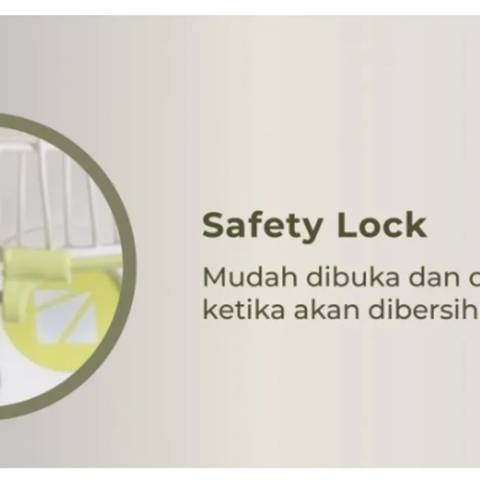 Kipas ini memiliki fitur thermofuse yang berguna sebagai pengaman dan mencegah terjadinya over heat pada motor kipas. Memiliki daya hemat yaitu 50 watt. Selain itu kipas ini memiliki bagian – bagian yang mudah untuk di bongkar pasang, menjadikannya lebih mudah untuk dibersihkan. Dengan standar SNI menjadikan kipas ini bisa digunakan dan diletakkan dimanapun sesuai dengan yang Anda inginkan.