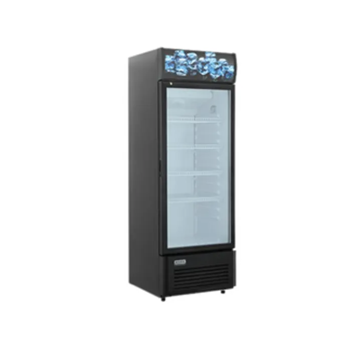 Showcase cooler dengan kaca dua lapis, penguapan otomatis, udara anti embun, dan kompresor heavy duty.