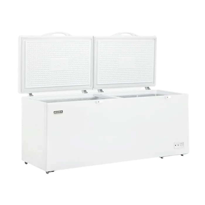Chest freezer heavy duty dengan Power Duo Cooling, lapisan aluminium, lubang pembuangan air, pintu yang dapat dikunci, dan keranjang yang kuat.