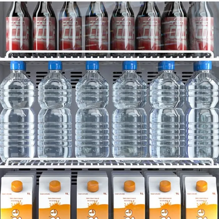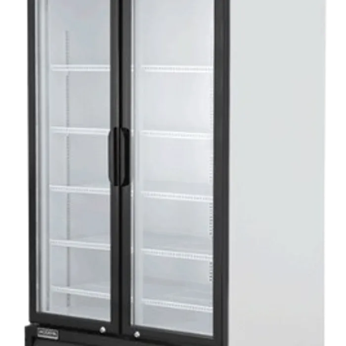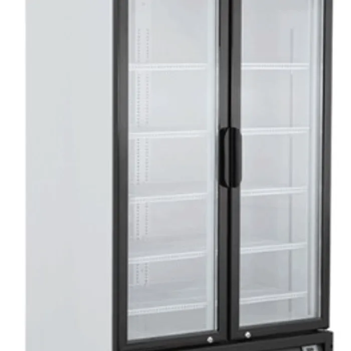 Showcase cooler dengan kaca dua lapis, penguapan otomatis, udara anti embun, dan kompresor heavy duty.