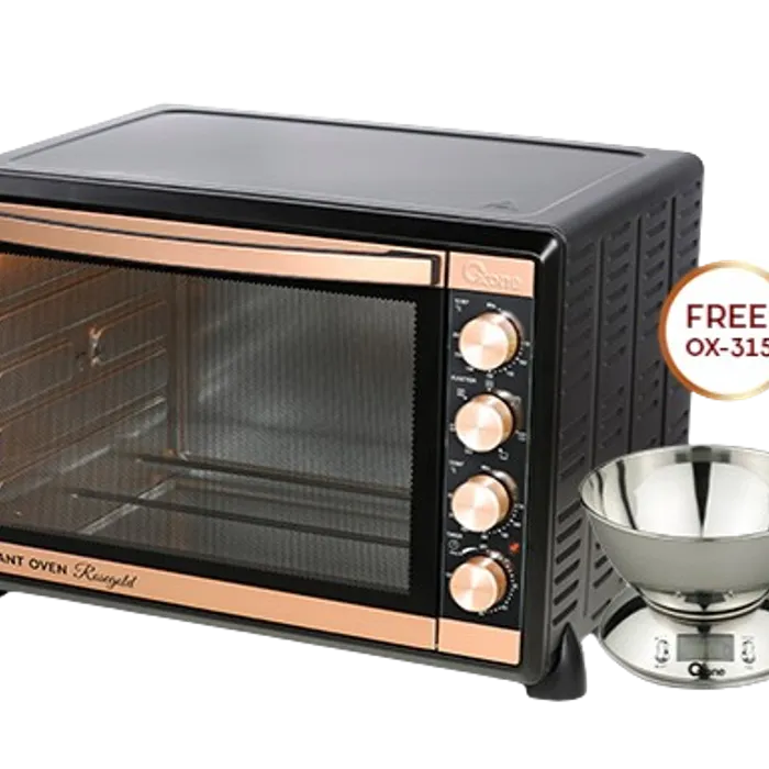 Giant Oven 52 Liter 1600 Watt memiliki bahan interior yang terbuat dari stainless steel dengan convection fan dan disertai dengan alat ROTISERRIES. Dengan kapasitas yang lebih besar membuat Anda dapat menciptakan banyak kue dalam satu tempat sekaligus.