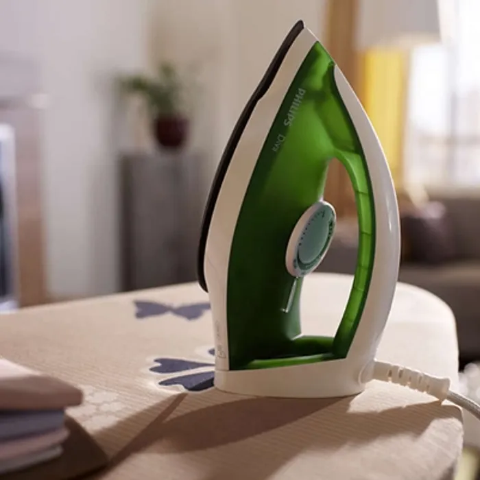 Philips GC-122/77 - Dry Iron Green 350 Watt memiliki pegangan yang didesain khusus agar tangan Anda tidak terselip dan terkena panasnya setrika. Penyimpanan setrika yang mudah hanya dengan melilitkan ke bagian belakang setrika, sehingga kabel setrika dapat awet, tidak putus, dan bertahan lama.