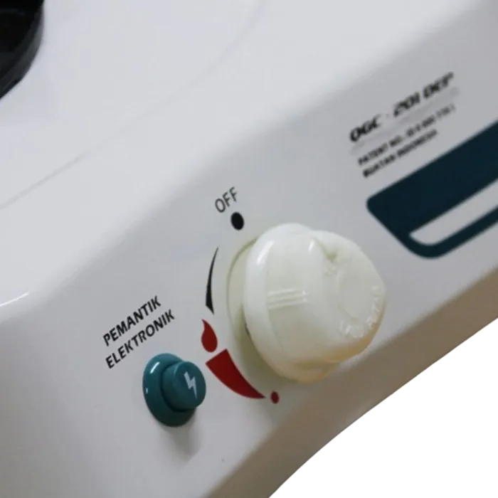 Dilengkapi tombol pemantik electrik sehingga dalam penyalaan kompor gas tinggal nut langsung nyala. Untuk power pemantik electrik tersebut menggunakan 2 buah baterai.