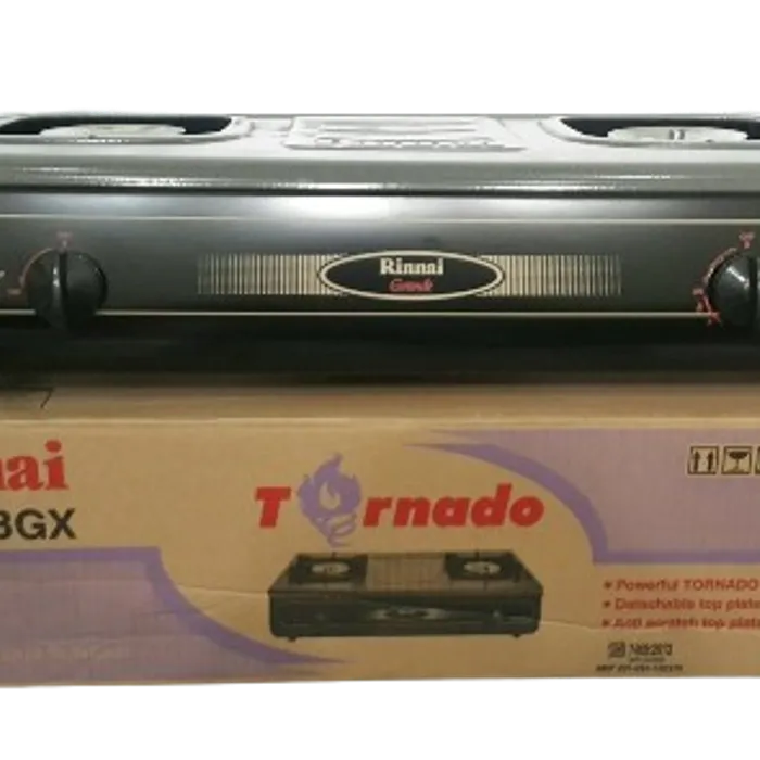 Kompor gas dua tungku dilengkapi dengan api tornado, kompor ini mampu memberikan panas dengan suhu maksimal sehingga masakan Anda dapat matang dengan sempurna. Memiliki body yang tebal dan tinggi dapat Anda tempatkan pada dapur Anda tanpa memakan banyak ruang. Kompor gas dari Rinnai ini pun terbuat dari material teflon berkualitas dan stainless steel yang awet dan tahan lama. Pada bagian top plate kompor ini juga dapat dilepas pasang sehingga memudahkan Anda untuk membersihkannya setelah proses memasak selesai.