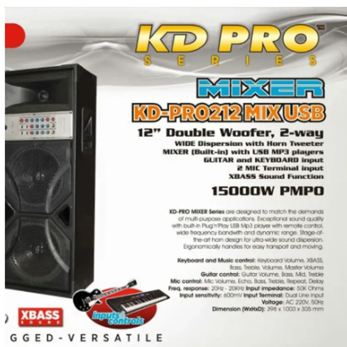 Didesain utk dipakai segala keperluan sound system dengan dilengkapi Mixer + USB MP3 Player, Remote control, guitar & keyboard input serta 2 mic terminal input akan memudahkan pemasangan & pengontrolan yg terpadu