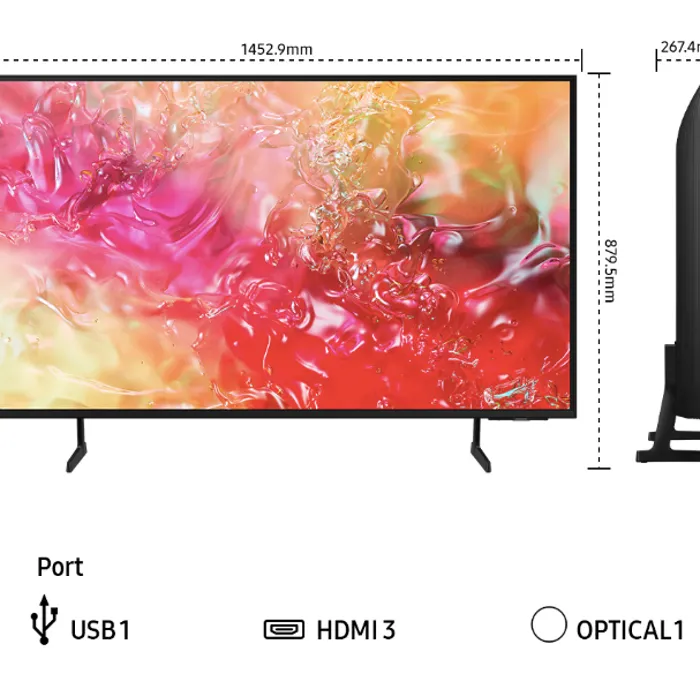 - TV without Stand (W x H x D) : 1452.9 x 834.0 x 60.6 mm