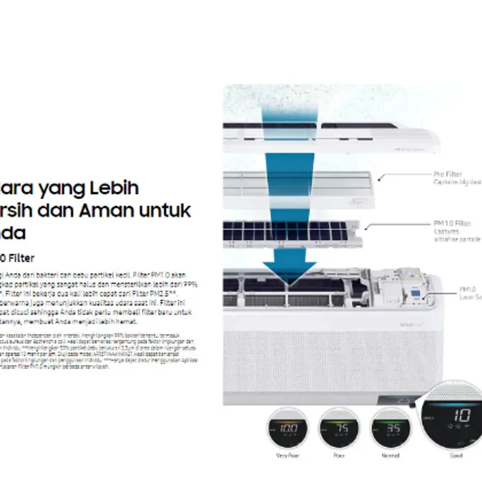 - Ada di Dalam Kotak : 1 Unit AC (Indoor+Outdoor) , 1 Remote, Kartu Garansi & Buku Petunjuk.