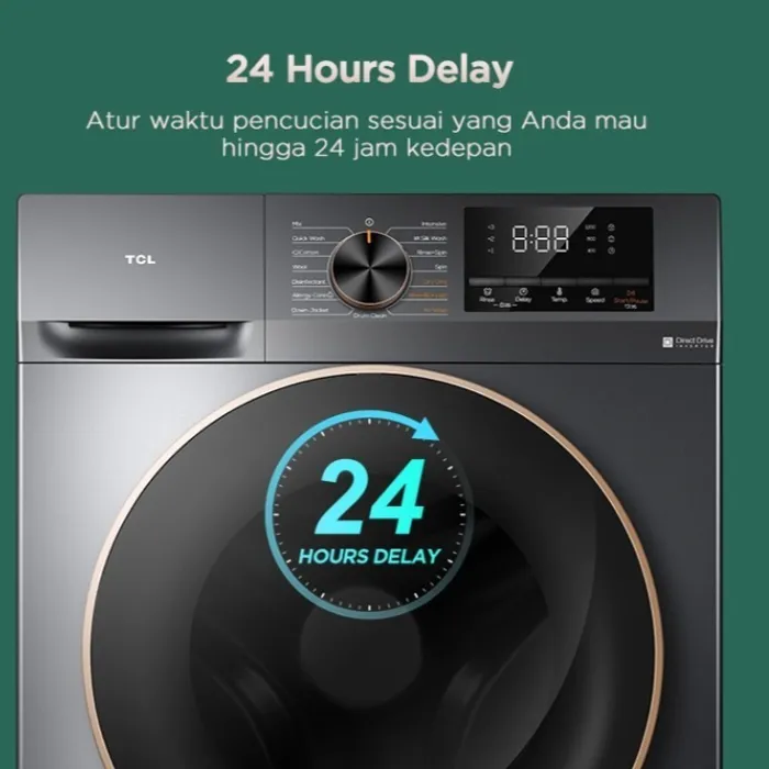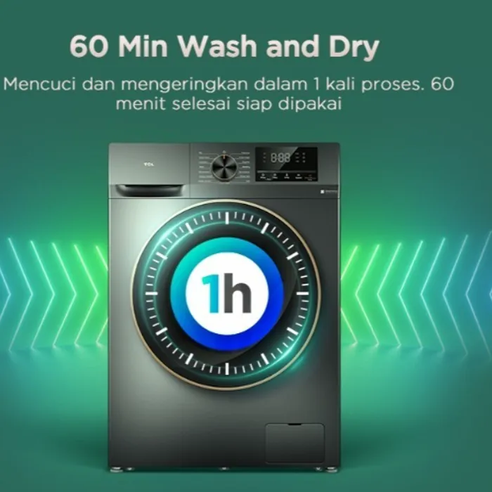 TCL Mesin Cuci Front Loading Washer Dryer 10.5 kg - 100% Kering - Direct Drive Motor - Heat Sterilization - Air Wash - Drum Clean - Pengeringan 7 kg (Model: Ecorora TWD105-C22DG)
