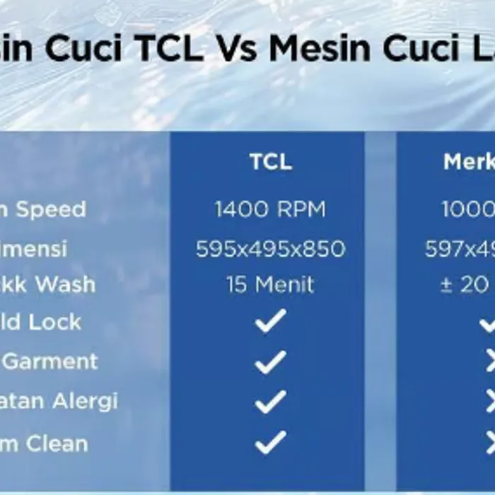 TCL Front Load Washing Machine TWF75-10S merupakan mesin cuci satu tabung berkapasitas 7 kg dengan volume tabung sekitar 49 liter, ideal untuk kebutuhan rumah tangga kecil hingga menengah. Mesin ini belum menggunakan motor inverter, namun tetap hemat energi dengan daya cuci 360 W dan daya pengering 300 W.