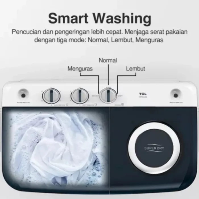 - Pilihan pencucian dan pengeringan: Normal, lembut, menguras