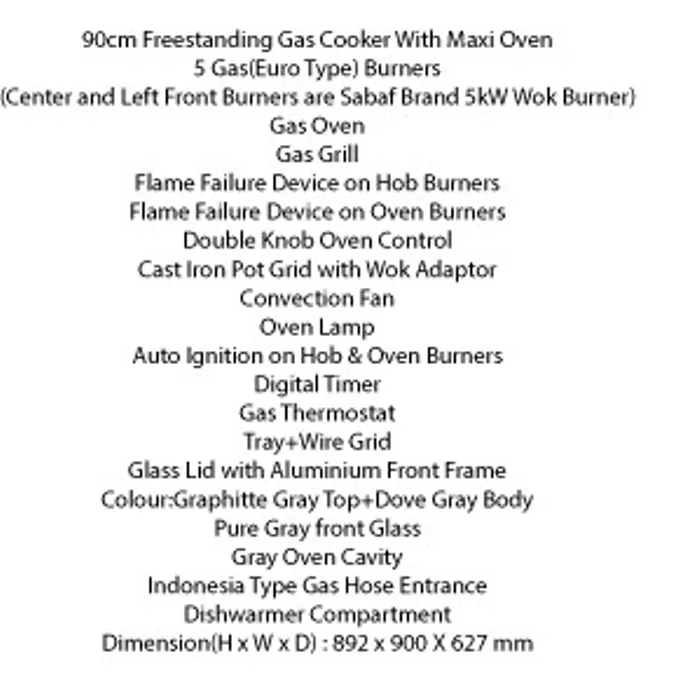 90cm Freestanding Gas Cooker With Maxi Oven