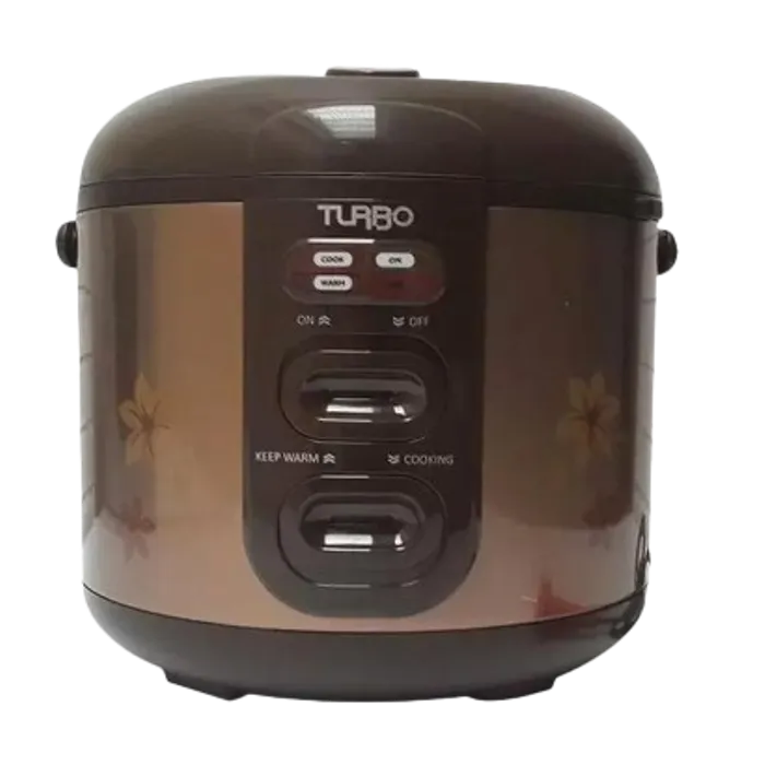 Memperkenalkan Turbo Rice Cooker dengan 3D Heating System dan wadah anti lengket terbaik yang membuat nasi matang secara merata sebagai sajian sempurna bagi keluarga. Dilengkapi 2 button geser yaitu on / off dan Cooking / Keep Warm. Keunggulan rice cooker Turbo terletak pada button on/off yang tidak dimiliki competitor, yang membuat pengguna tidak mencabut / pasang kabel dari colokan listrik. Garansi 3 tahun untuk kerusakan fungsi dan sparepart. Turbo tidak menggaransikan inner pot yang penyok, baret, dan terkelupas, Kabel yang rusak yg diakibatkan oleh kesalahan penggunaan. Material yang bersentuhan langsung dengan makanan sudah dalam batas aman dan terbebas dari Lead, Kadmiun dan Mercury. Turbo 3D heating system, pemanasan sempurna dari sisi atas, samping dan bawah.