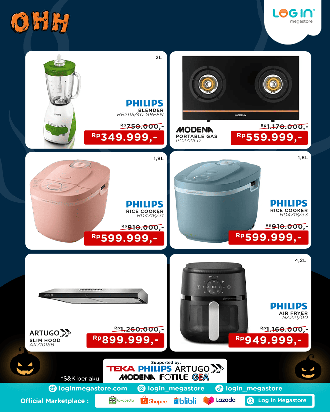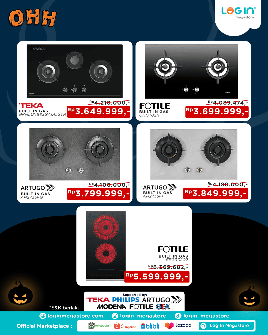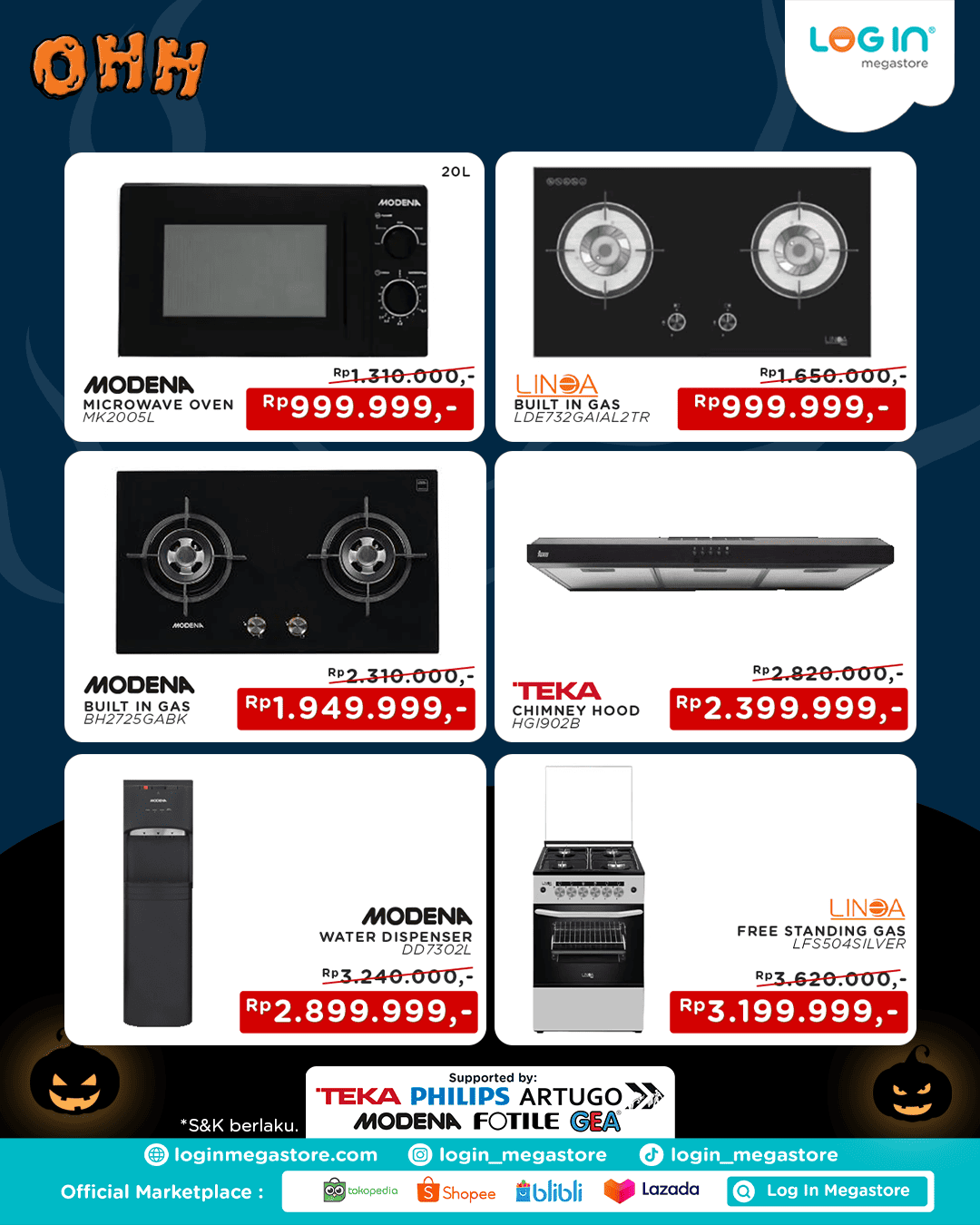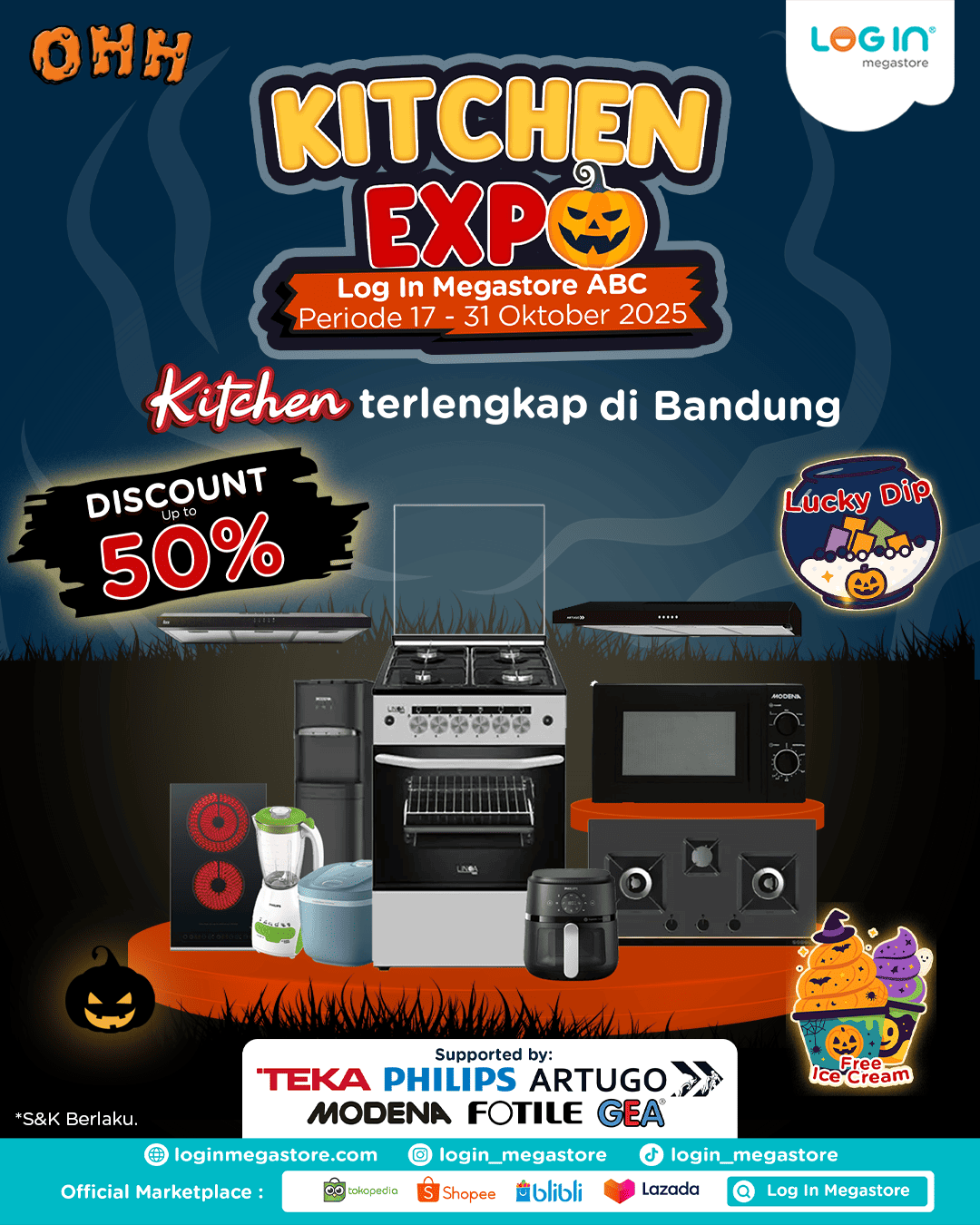 Selama Kitchen Expo 2025, kamu bisa dapetin promo harga spesial Oktober Harga Horror buat berbagai produk dapur dari brand-brand top seperti Modena, Teka, Fotile, Artugo, Linea, dan Philips.