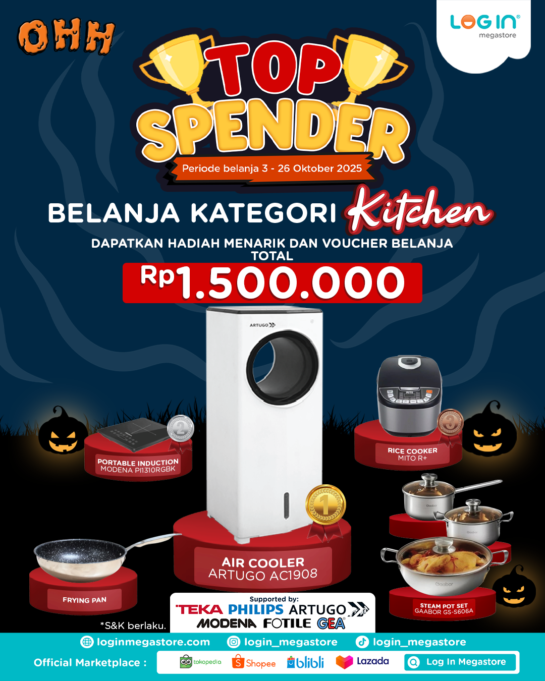 Belanja produk kategori Kitchen selama periode 3–26 Oktober 2025, dan dapatkan kesempatan jadi Top Spender untuk membawa pulang hadiah spesial 🎁