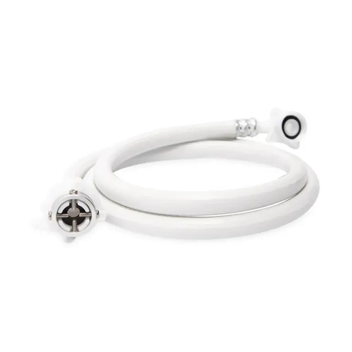 - Satu ujungnya digunakan untuk koneksi dengan kran air bersih dengan mekanisme penguncian menggunakan baut yang mudah dilakukan, ujung lainnya digunakan untuk koneksi masuknya air ke dalam mesin cuci