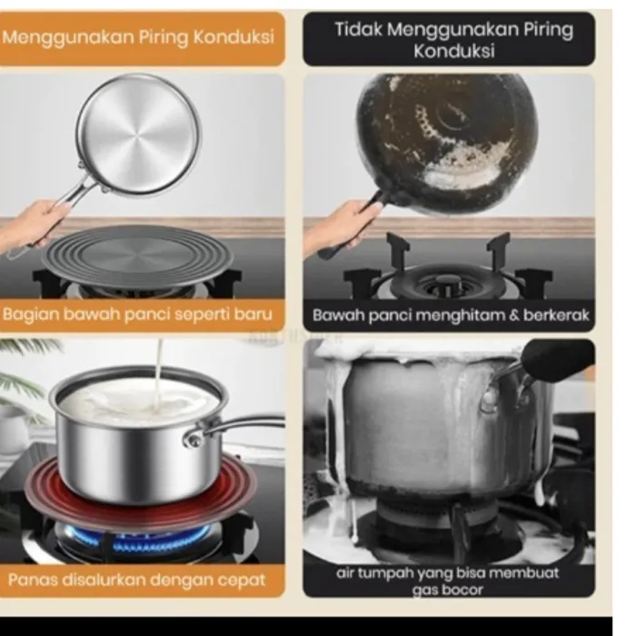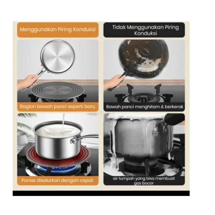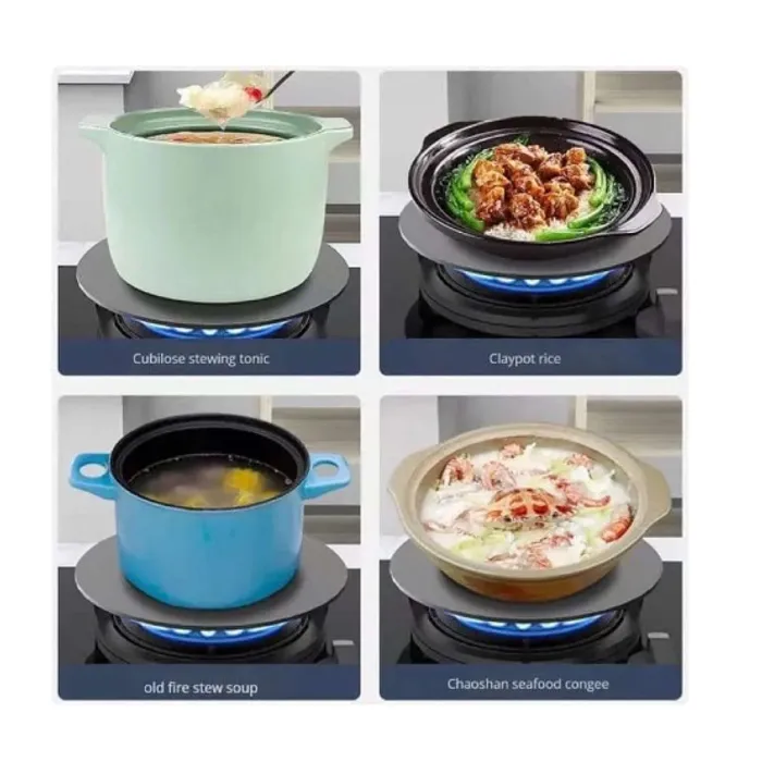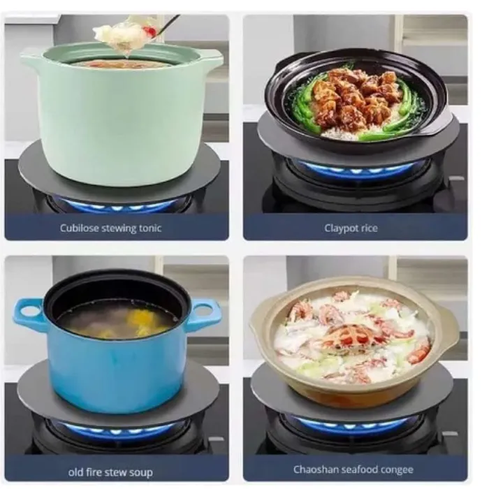 5. Letakkan plat di atas kompor, menyerap dan menyebarkan panas secara merata untuk efisiensi energi yang lebih besar, melindungi panci Anda agar tidak mudah gosong
