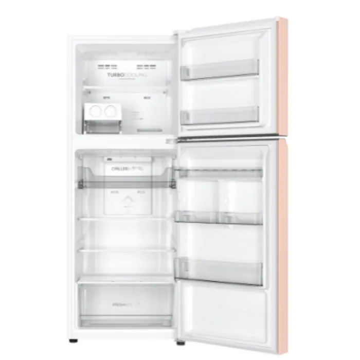AQR-DTM265CBP(PE) memiliki fitur Turbo Cooling, Bigger Freezer, -1° C Chiller Box, Humidity Control, H-DEO Fresh, dan Organized Storage.