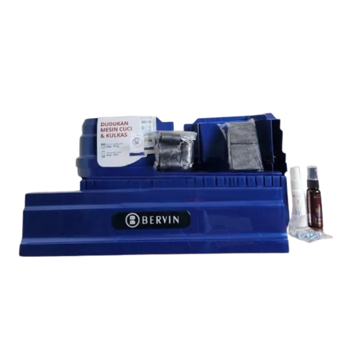 Terdapat alas karet bebas getar untuk mencegah mesin cuci tergeser karena getaran mesin cuci
