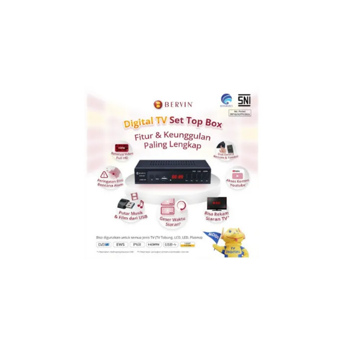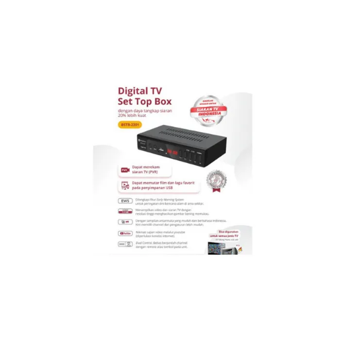 isi paket : Unit Set Top Box, Remote, garansi 1 tahun, kabel AV to RCA Set top box