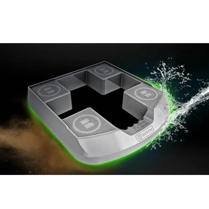 Dispenser terlindung dari kotor dan genangan air. Mudah dipindahkan dengan handle yang mudah digenggam dan roda yang aman.
