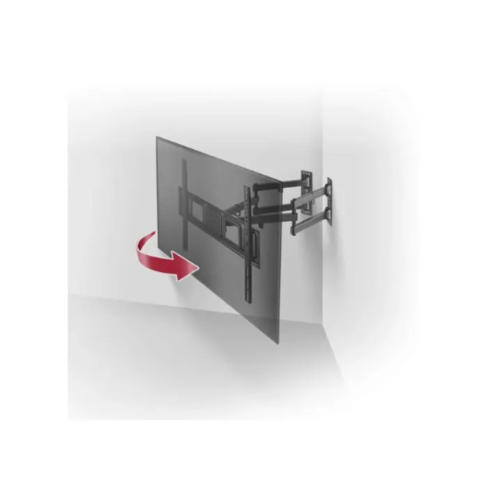 Full Motion Adjustable TV angle to get perfect view by adjusting tilt and swivel Adjustable Leveling Allow TV to be perfectly positioned after hanging Cable Management Keeps everything organized Use For Flat Panel Display TVs or PC Monitors Tilt -15°~+5° adjustable tilt down & up Swivel -45°~+45° swivel left & right Screen level -3°~+3° VESA min. 75x75, max. 600x400 Maximum load up to 45kgs/99lbs Safety 3 Times Safety Tested Ukuran kemasan 72 x 23.5 x 6.5 mm Berat paket 5236 gr Nama Produk Corner Full Motion Wall Bracket TV size 32" - 70"
