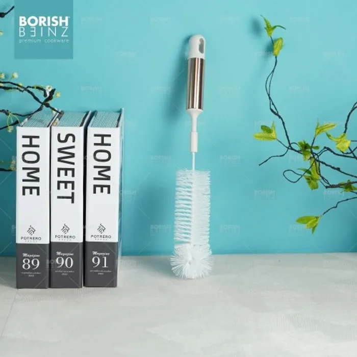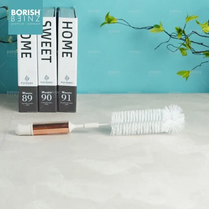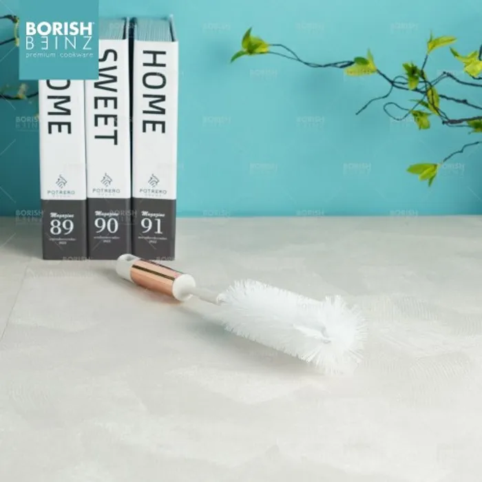 Sikat Botol bergagang Plastik ini dapat mencapai dasar memalalui leher botol yang sempit karena memiliki bulu lembut dan gagang yang ramping.