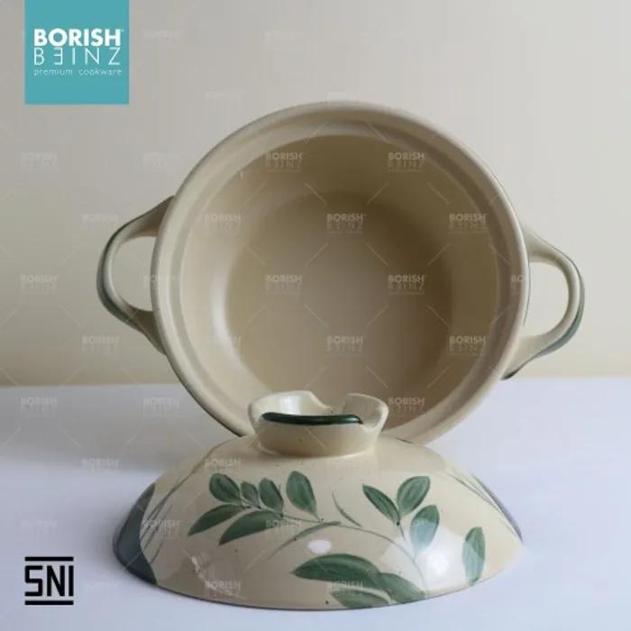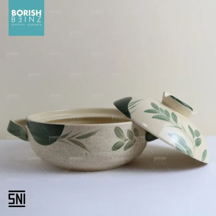 Spesifikasi Produk: 1. Berat: 2.187 grm 2. Kapasitas: 2.5 Liter 3. Tinggi: 9 cm 4. Lebar: 23.5 cm 5. Warna: Krem 6. Material Ceramic 7. Ukuran tinggi dengan lid 14.5 cm 8. Ukuran diameter dengan handle 31 cm - Microwave & Dishwasher safe!!! - Harga Include Free Packaging & Bubble Wrap!!! - Memenuhi SNI (Standard Negara Indonesia) - Jaminan packaging aman sampai tujuan Seluruh produk Borish Beinz sudah melalui proses QC dgn kondisi 99%+ mulus, dikarenakan produk ini melewati proses pembakaran dgn temperatur tinggi, sehingga bintik hitam, gelembung tidak dapat dihindari (tidak mengurangi fungsi).