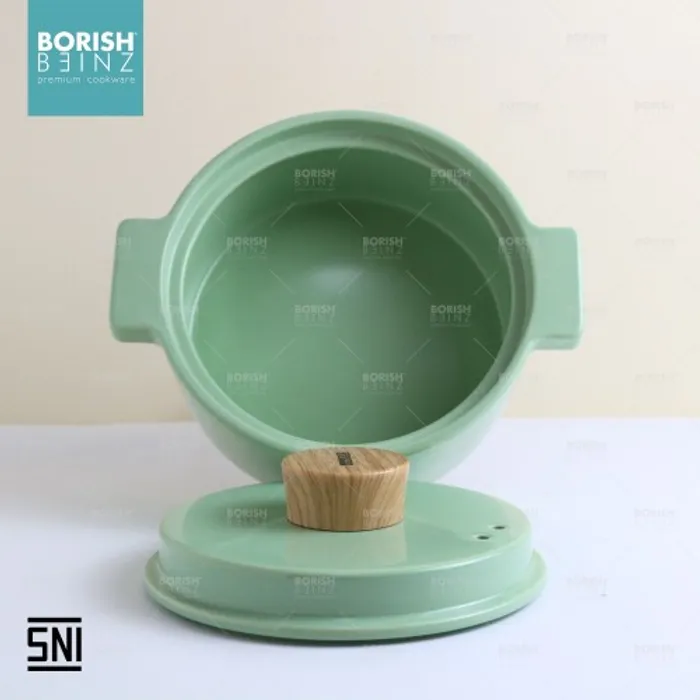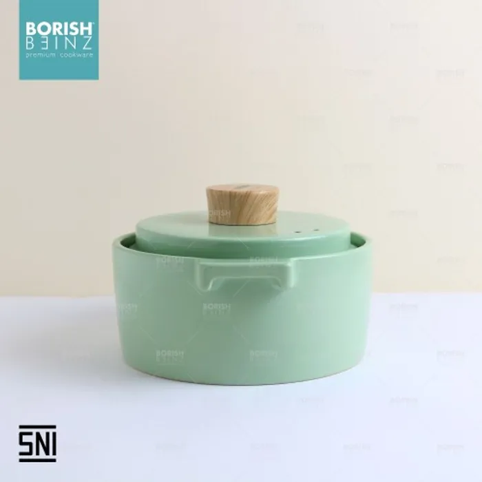 Spesifikasi Produk: 1. Berat: 2.104 grm 2. Kapasitas 1.6 Liter 3. Tinggi: 9 cm 4. Lebar: 20 cm 5. Warna: Hijau Muda 6. Material Ceramic 7. Ukuran tinggi dengan lid 13.5 cm 8. Ukuran diameter dengan handle 25 cm - Microwave & Dishwasher safe!!! - Harga Include Free Packaging & Bubble Wrap!!! - Memenuhi SNI (Standard Negara Indonesia) - Jaminan packaging aman sampai tujuan Seluruh produk Borish Beinz sudah melalui proses QC dgn kondisi 99%+ mulus, dikarenakan produk ini melewati proses pembakaran dgn temperatur tinggi, sehingga bintik hitam, gelembung tidak dapat dihindari (tidak mengurangi fungsi).