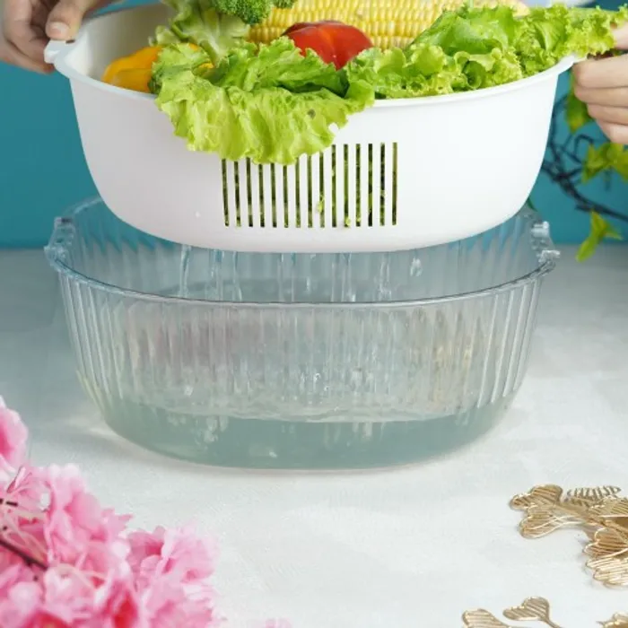 Drain Basket untuk mempermudah mencuci dan menyimpan buah-buahan dan sayur-sayuran.