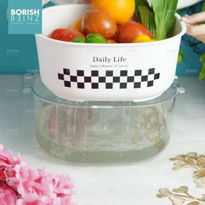 Drain Basket untuk mempermudah mencuci dan menyimpan buah-buahan dan sayur-sayuran.