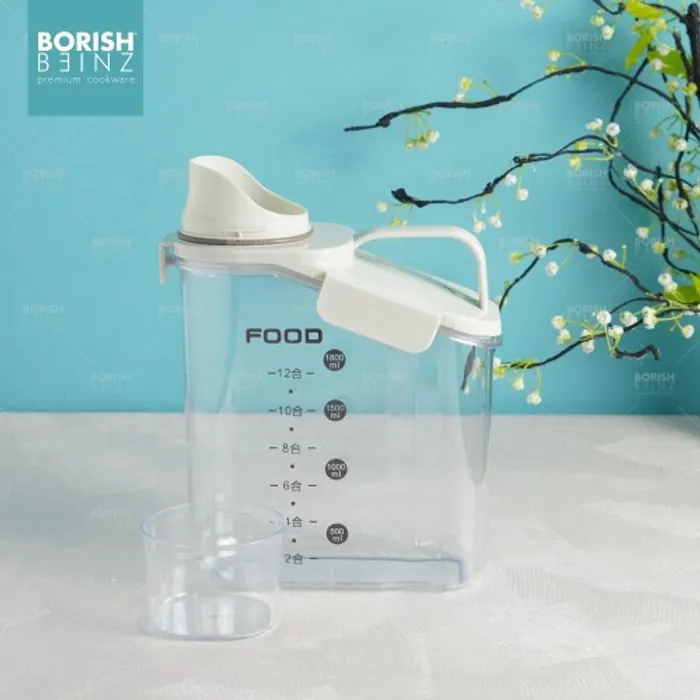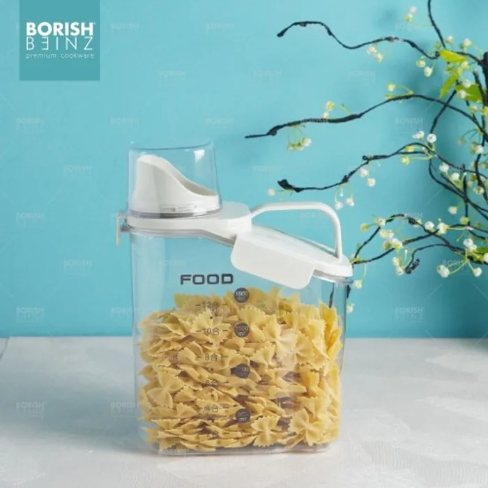 Toples penyimpanan dengan penutup takaran bening berbahan berkualitas dan kedap udara.