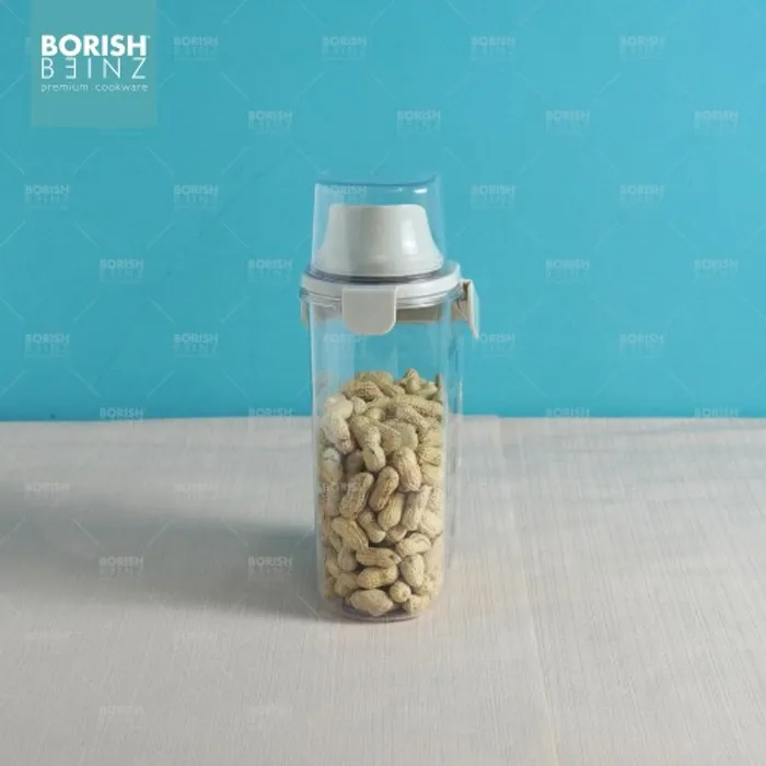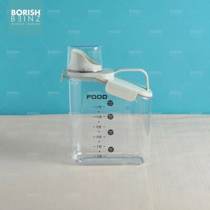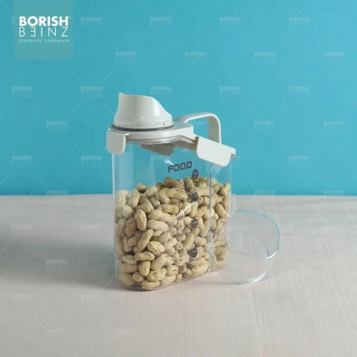 Toples penyimpanan dengan penutup takaran bening berbahan berkualitas dan kedap udara.