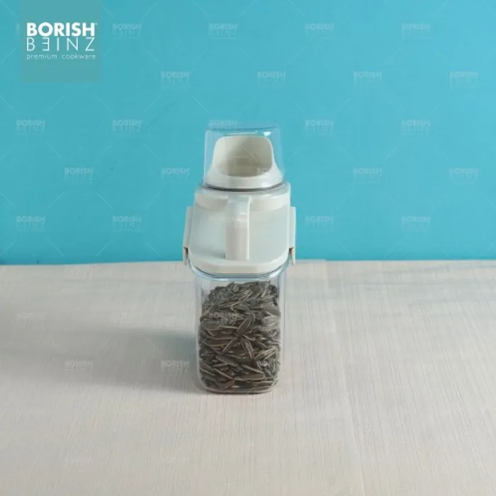 Toples penyimpanan dengan penutup takaran bening berbahan berkualitas dan kedap udara.