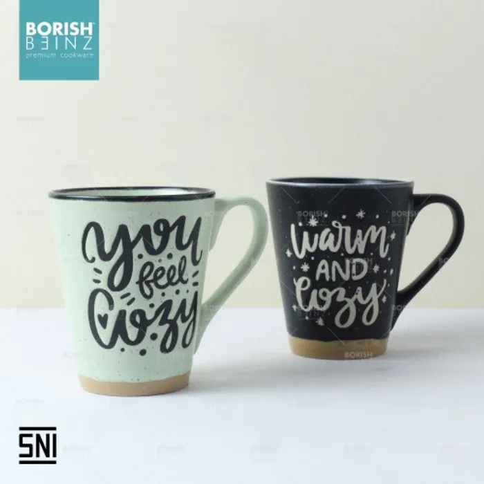 Spesifikasi Produk: 1. Berat: 266 grm 2. Kapasitas : 250 ml 3. Tinggi: 10 cm 4. Lebar: 8.5 cm 5. Warna: Hitam , Biru Tosca 6. Material Ceramic - Microwave & Dishwasher safe!!! - Harga Include Free Packaging & Bubble Wrap!!! - Memenuhi SNI (Standard Negara Indonesia) - Jaminan packaging aman sampai tujuan Seluruh produk Borish Beinz sudah melalui proses QC dgn kondisi 99%+ mulus, dikarenakan produk ini melewati proses pembakaran dgn temperatur tinggi, sehingga bintik hitam, gelembung tidak dapat dihindari (tidak mengurangi fungsi).