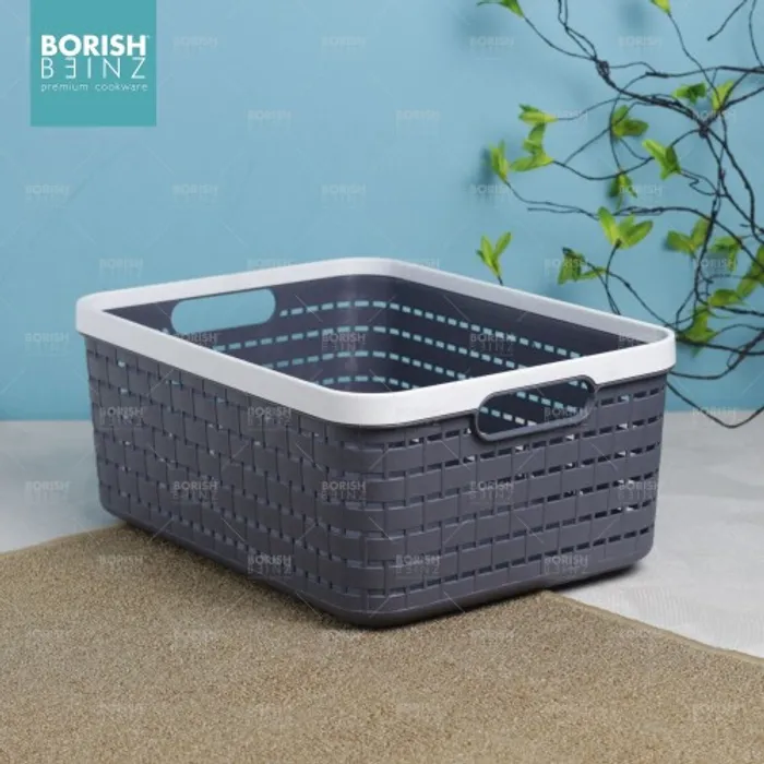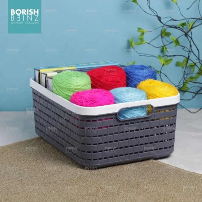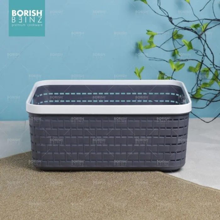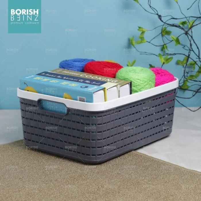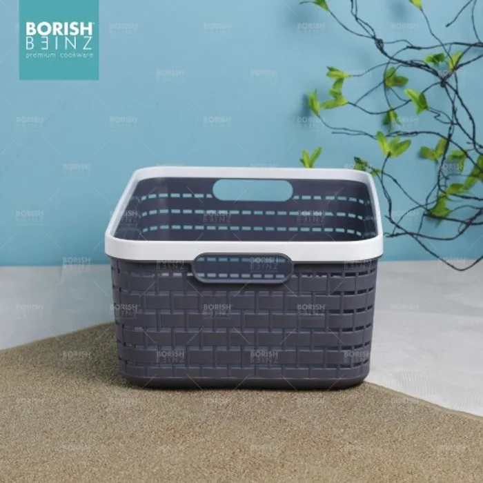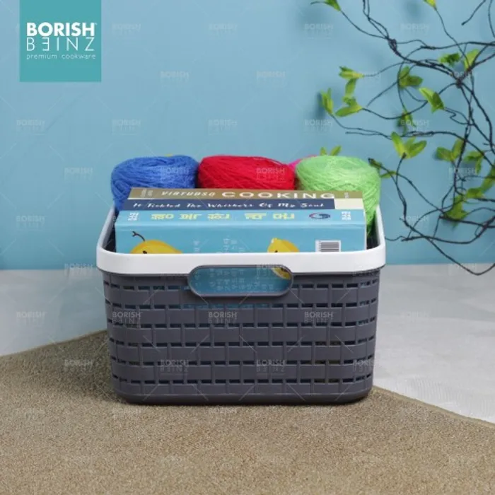 Keranjang serbaguna berbahan plastik tebal. Cocok untuk menyimpan aksesoris, kosmetik, snack, tempat souvenir.