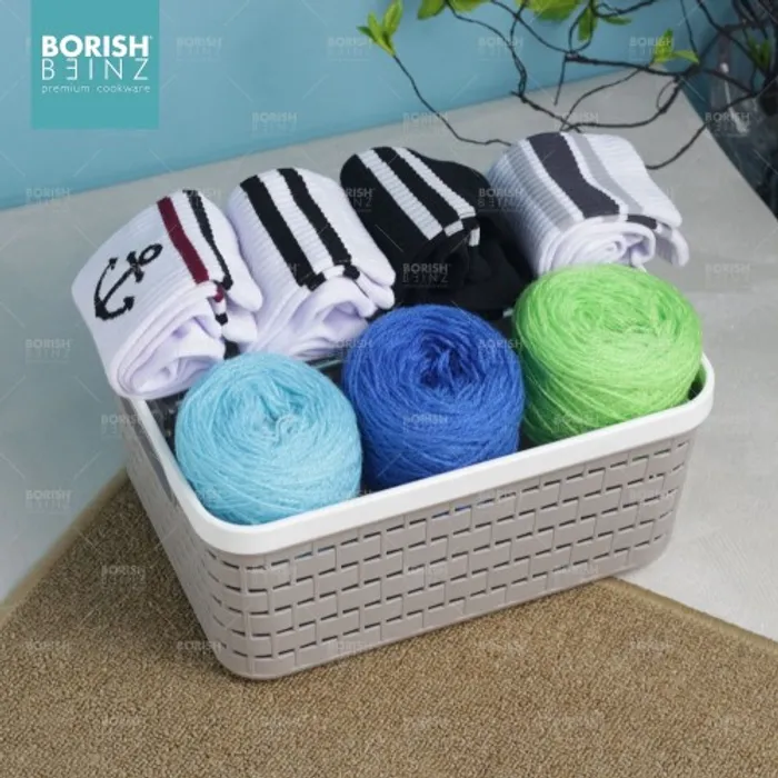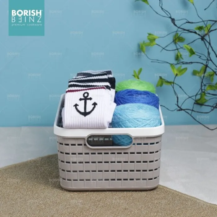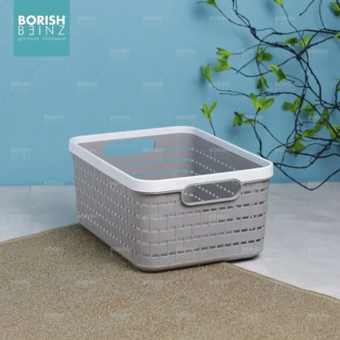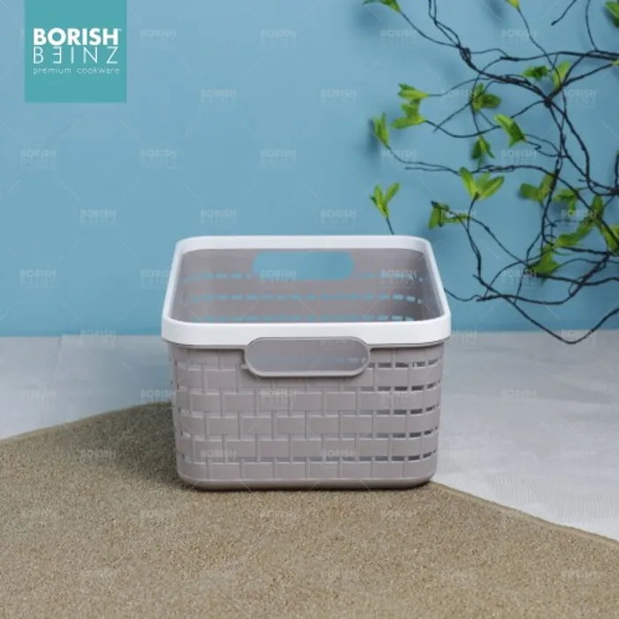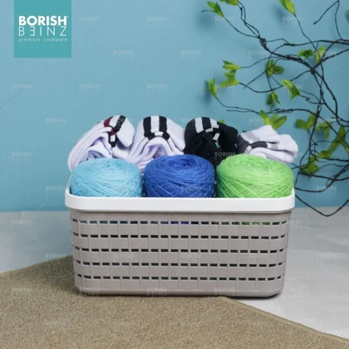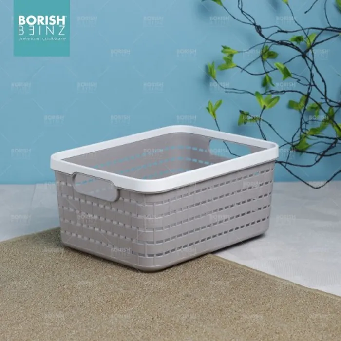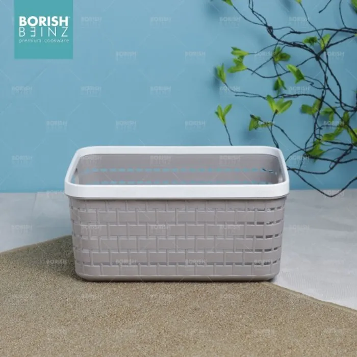 Keranjang serbaguna berbahan plastik tebal. Cocok untuk menyimpan aksesoris, kosmetik, snack, tempat souvenir.