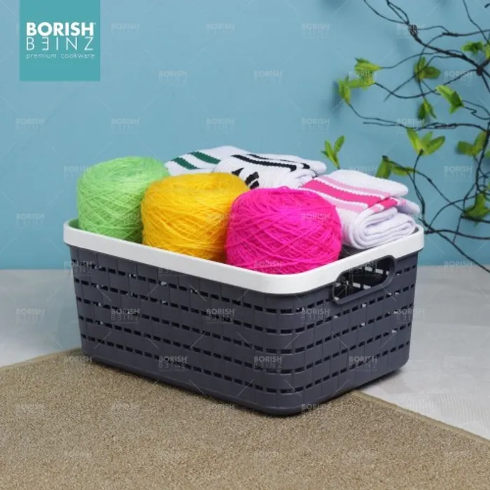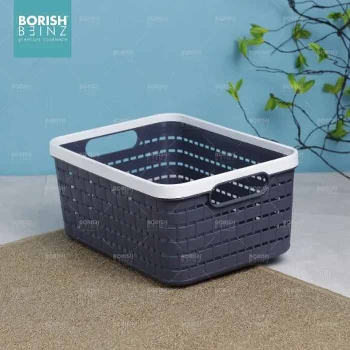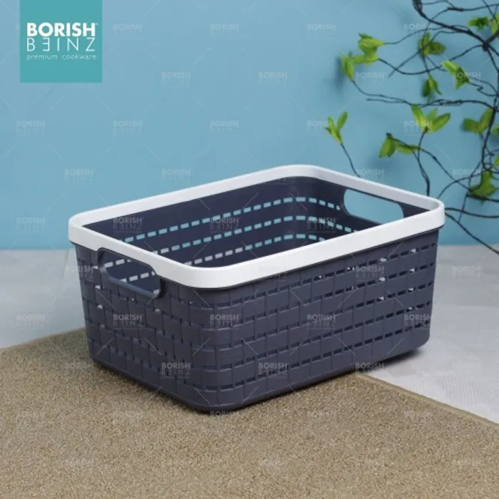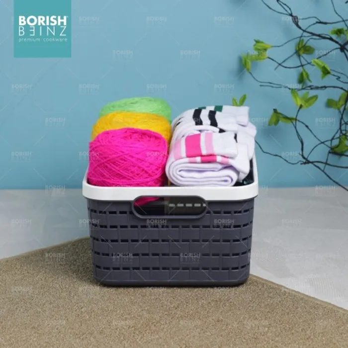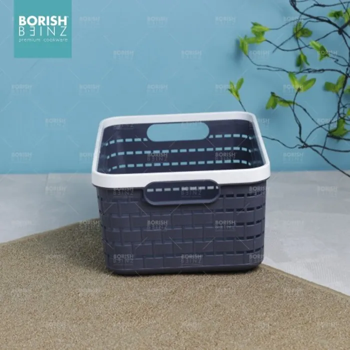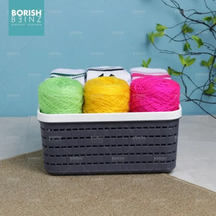 Keranjang serbaguna berbahan plastik tebal. Cocok untuk menyimpan aksesoris, kosmetik, snack, tempat souvenir.
