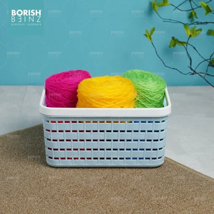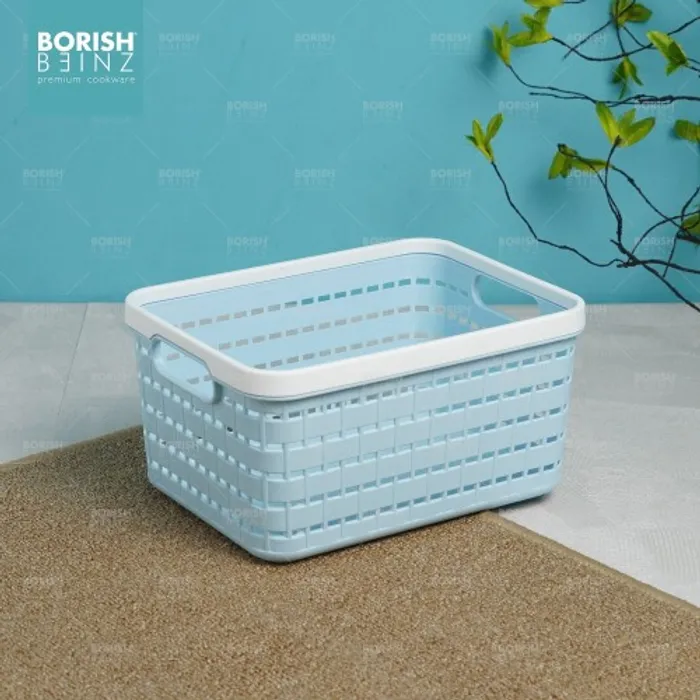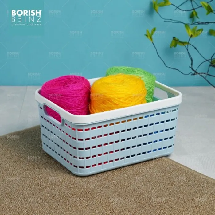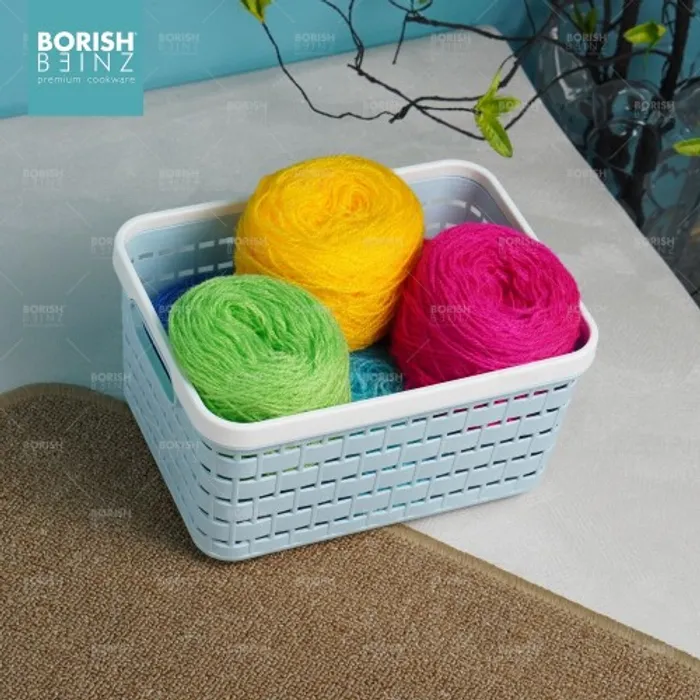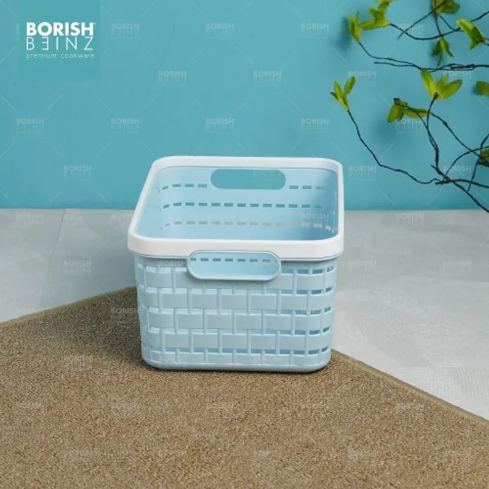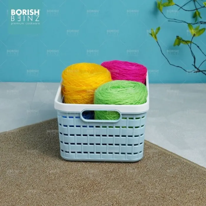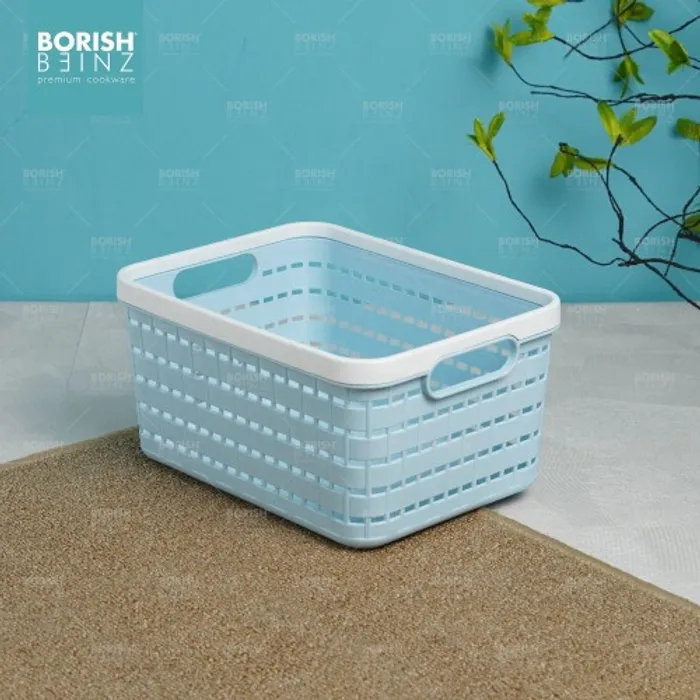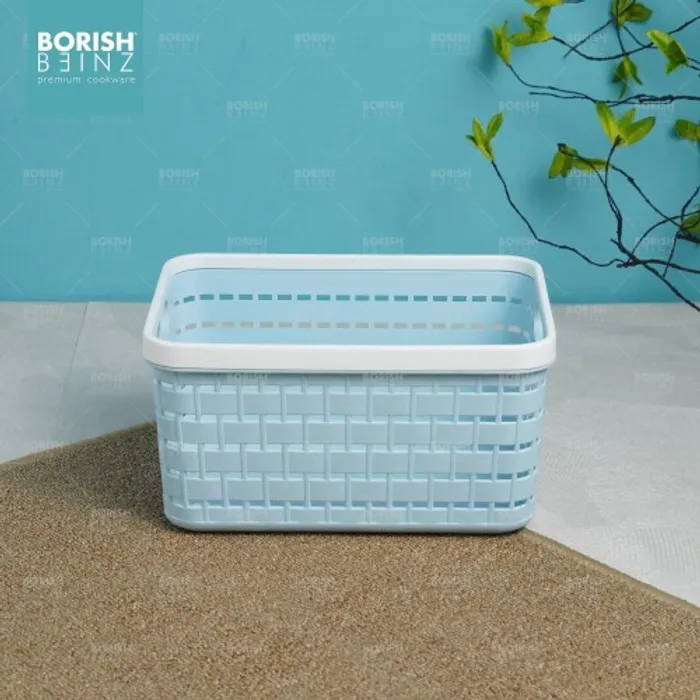 Keranjang serbaguna berbahan plastik tebal. Cocok untuk menyimpan aksesoris, kosmetik, snack, tempat souvenir.