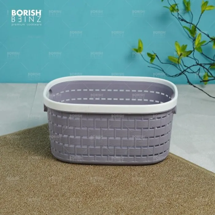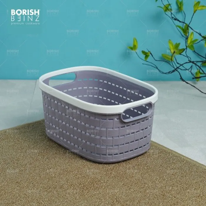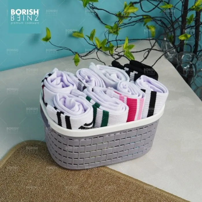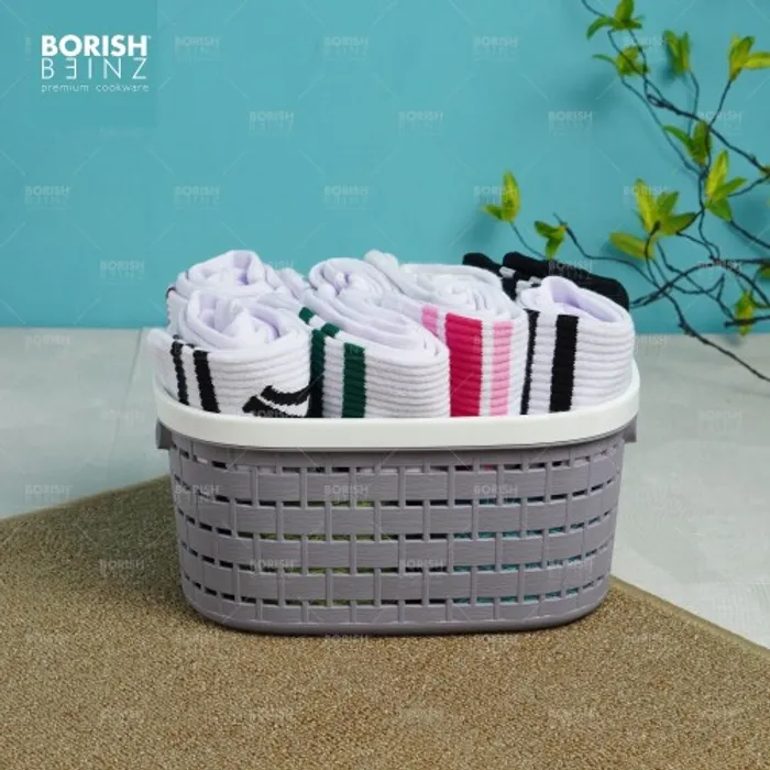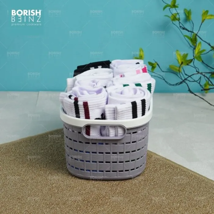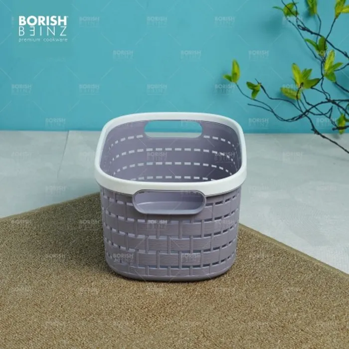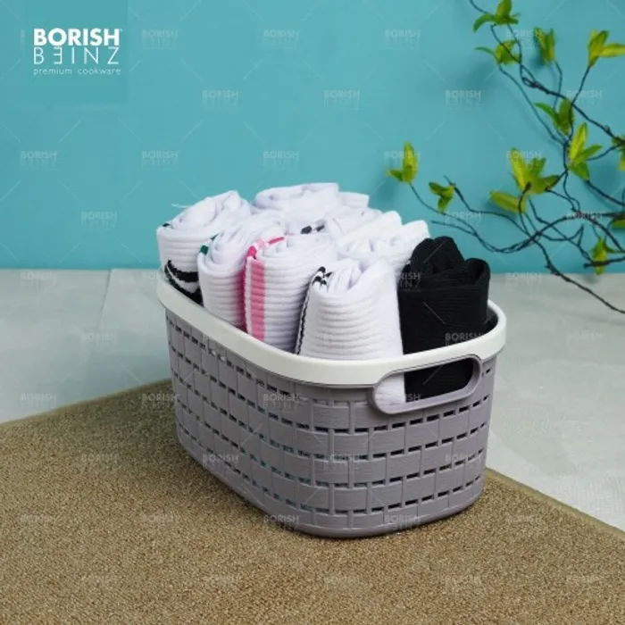 Keranjang serbaguna berbahan plastik tebal. Cocok untuk menyimpan aksesoris, kosmetik, snack, tempat souvenir.