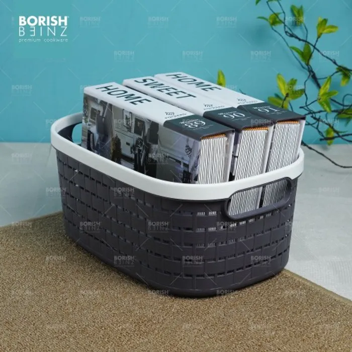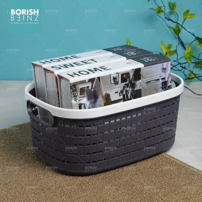 Keranjang serbaguna berbahan plastik tebal. Cocok untuk menyimpan aksesoris, kosmetik, snack, tempat souvenir.