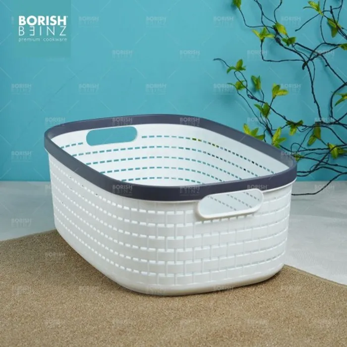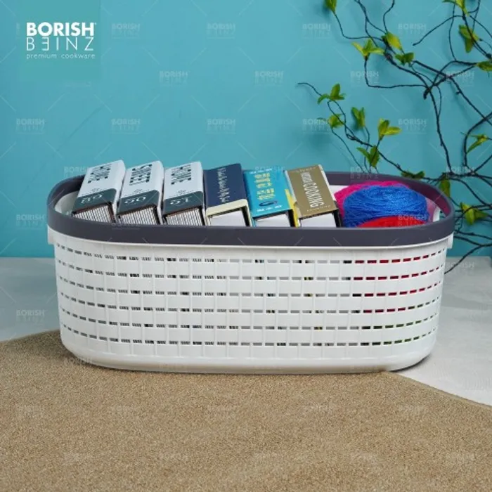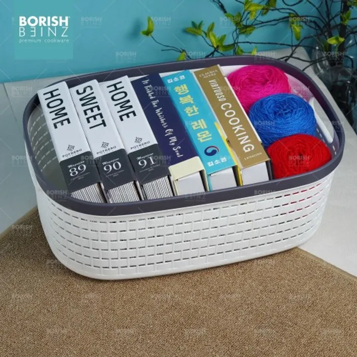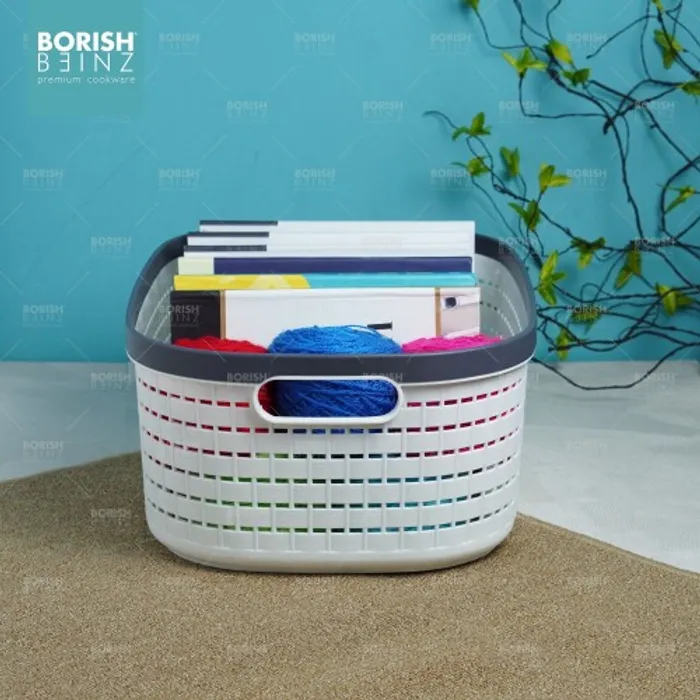 Keranjang serbaguna berbahan plastik tebal. Cocok untuk menyimpan aksesoris, kosmetik, snack, tempat souvenir.