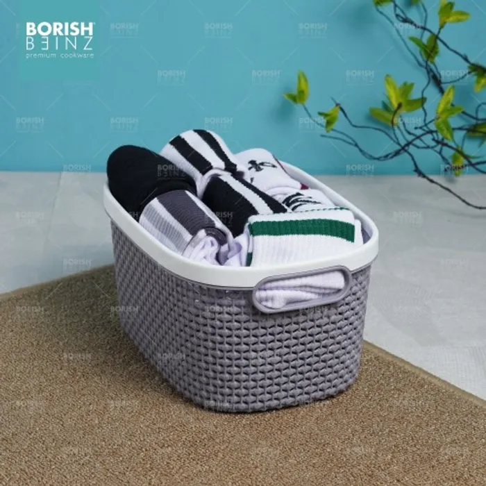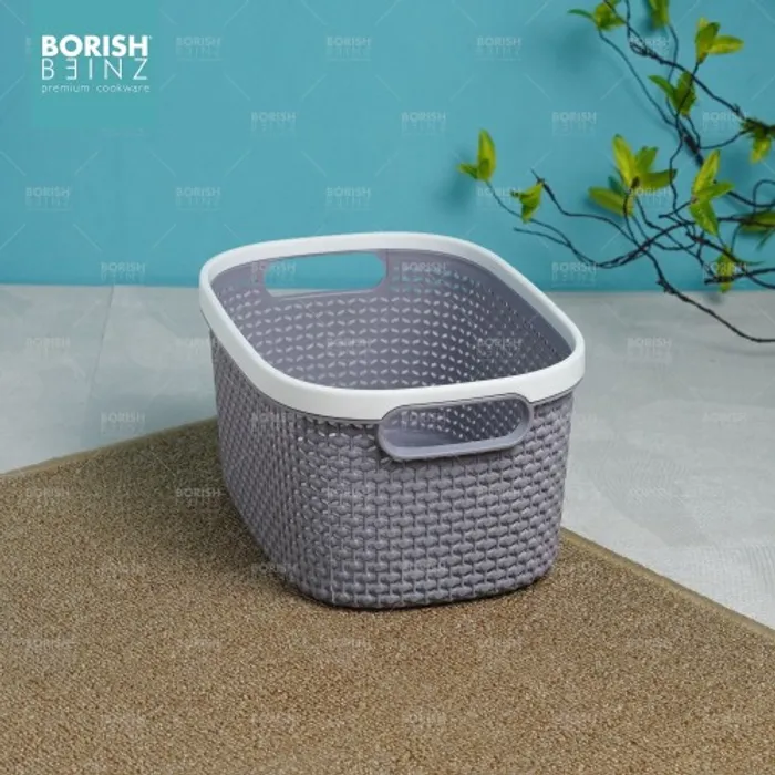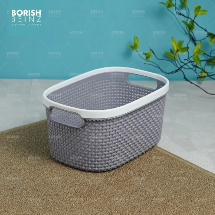Keranjang serbaguna berbahan plastik tebal. Cocok untuk menyimpan aksesoris, kosmetik, snack, tempat souvenir.
